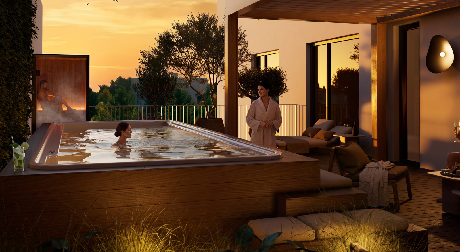 Exclusive penthouse apartments offer exceptional living with beautiful views of the surroundings and maximum privacy. Nearly the entire apartment is filled with natural daylight and complemented by generous terraces or rooftop gardens, with the option to install a swim spa. Comfort is further elevated by a private elevator with direct access to the apartment, a luxurious living area with kitchen, and spacious rooms designed to meet the highest standards of living.