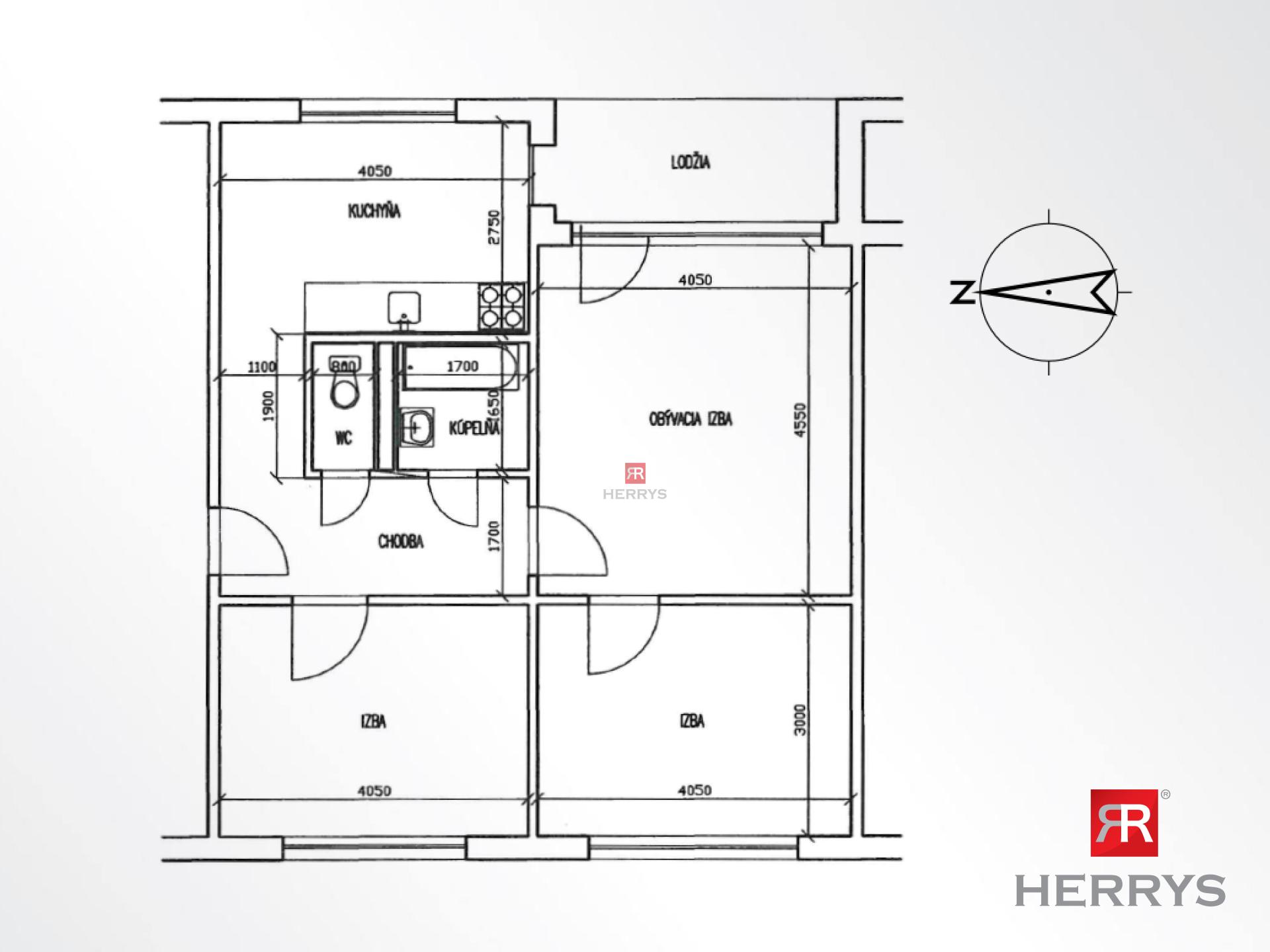 Vstupná chodba, oddelená kuchyňa so samostatnou špajzou, WC, Kúpeľňa, spálňa, detská izba, obývacia izba s východom na priestrannú loggiu.