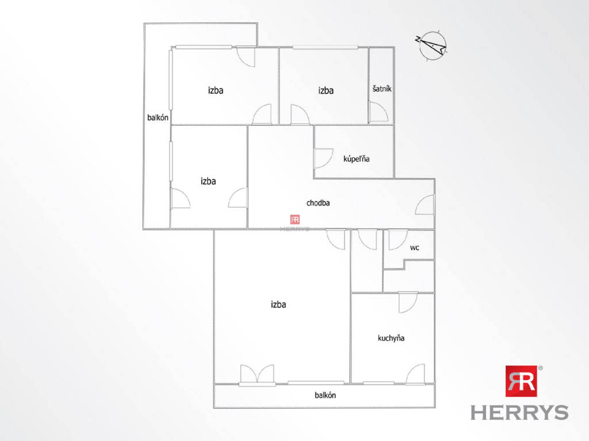 Vstupná predsieň, samostatná toaleta, šatník, kúpeľňa s WC, kuchyňa so špajzou, priestranná obývacia izba s výstupom na lodžiu (prístup aj z kuchyne), spálňa so šatníkom, dve samostatné detské izby s prístupom na balkón