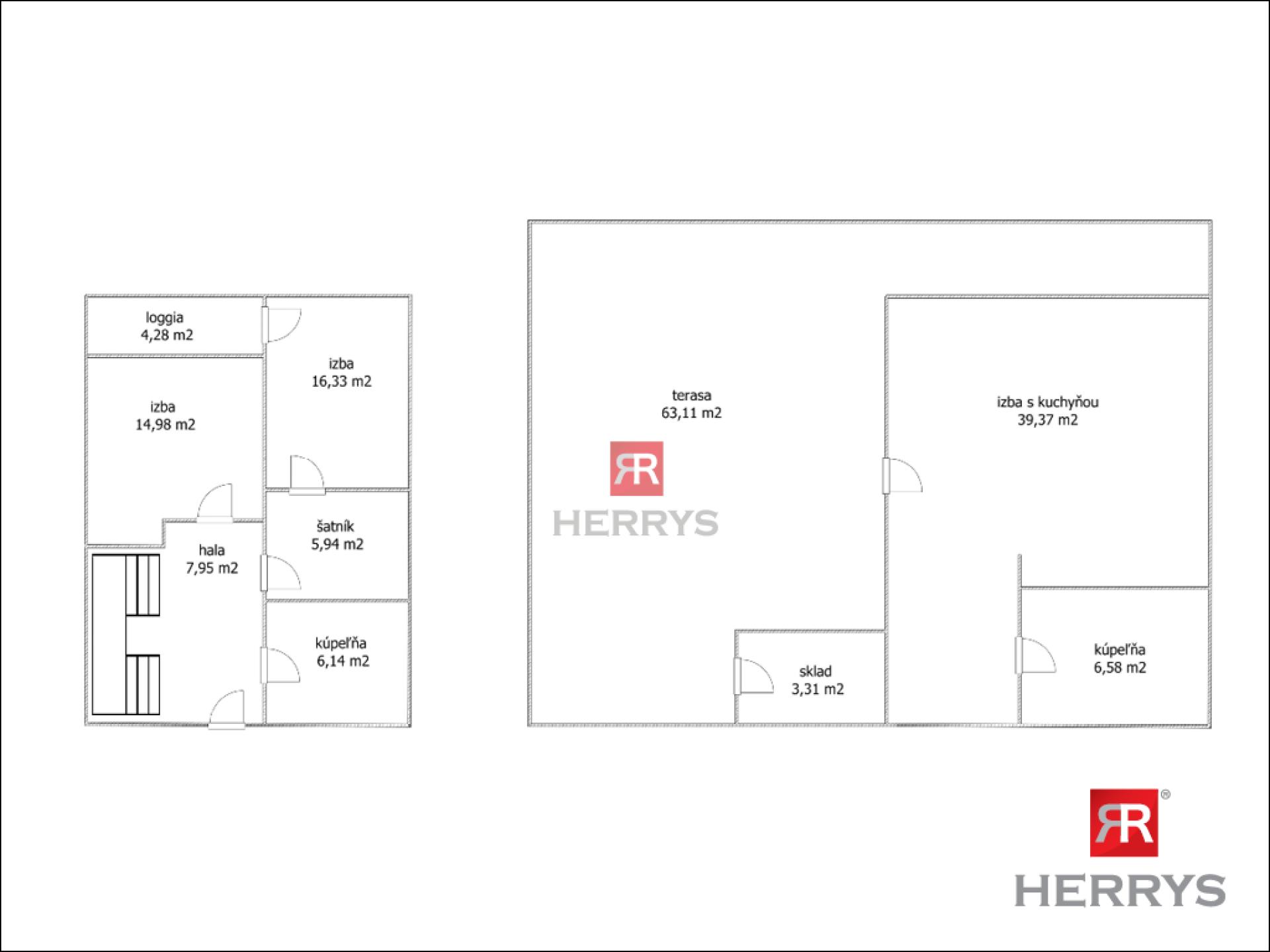úžitková plocha: 172,27 m2 (byt: 104,88 m2 + terasa: 63,11 m2 + lodžia: 4,28 m2)